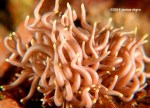 The boat took us north up to Kasai Point about 10 to 15 minutes away. I was close to reaching 600 dives so I was not prepared to see something that I had never seen before in a tropical environment. Sure enough, Cayo pointed to a new critter for me, a nudibranch, the yellow-tipped Phyllodesmium, locally known as the spaghetti nudibranch. Spaghetti is a descriptive adjective, but I also see the elegant pose of a Hindu goddess with many arms in the photo that I took. I am not sure what happens when two of these get together-how do they ever get apart?