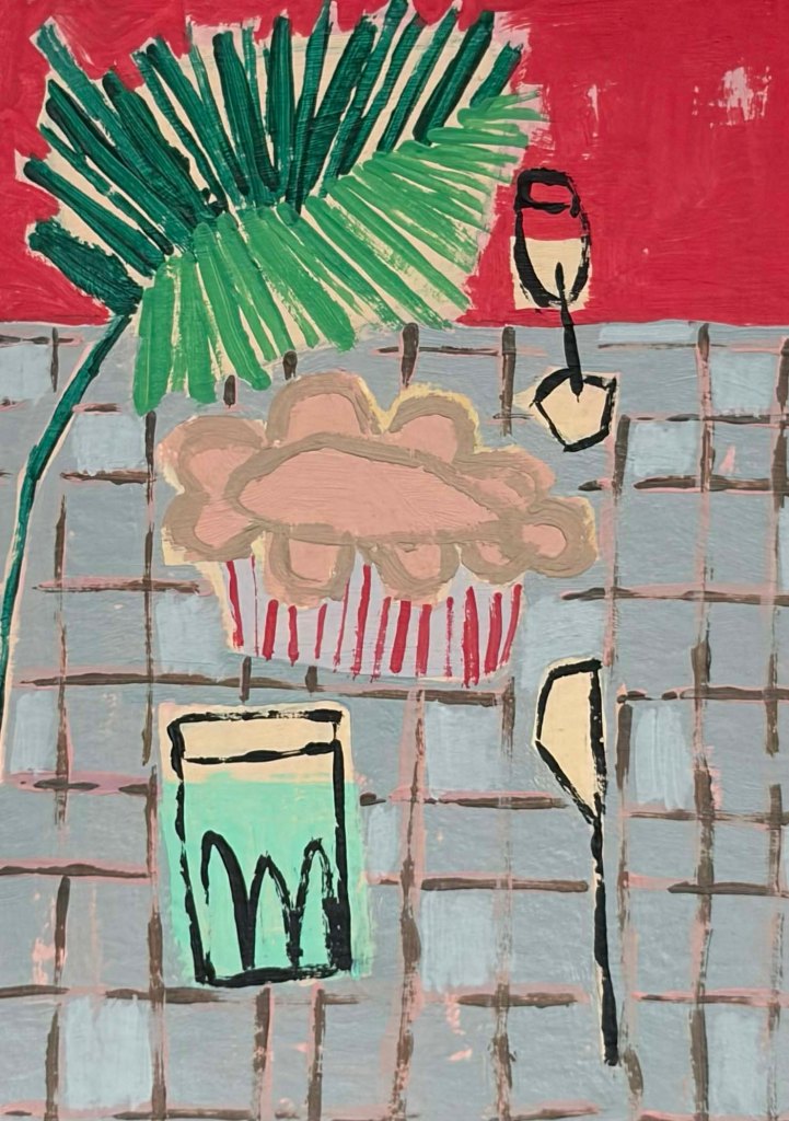 In Rome, we went to our favorite restaurant, Hostaria Romana, where I always order carciofi alla giudia (fried artichokes) – our waiter talked us into getting two –, tonnarelli cacio e pepe, and maialino (roast pig). They always put us in a small room on the lower level with two rows of tables, the formerly white walls filled with the artwork of previous diners. I looked for mine from years past (the dates on the walls remained from before my previous visit), but I couldn’t find it.